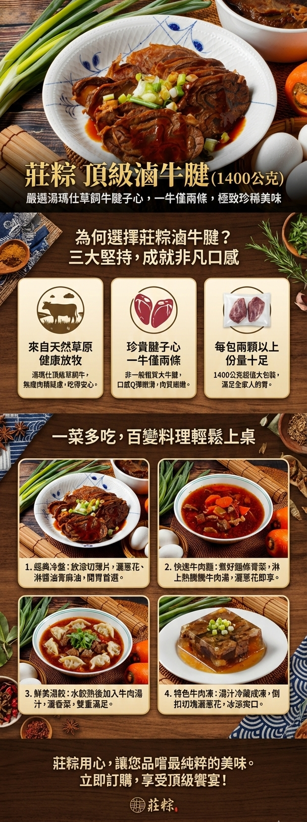 每包兩顆以上湯瑪仕頂級草飼牛腱子心,一隻牛只有兩條腱子心,不是一般粗質大牛腱,牛隻在草原健康放牧,完全沒有瘦肉精疑慮,口感Q彈嫩滑